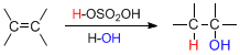 This can react with either OSO2OH to give an alkyl hydrogensulfate ester ROSO2OH which then reacts with water (hydrolyses), or with H-OH. In either case, the overall outcome is addition of water to the alkene.