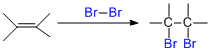 2) to give dihaloalkanes with the halogen atoms on adjacent carbon atoms. A single product is formed because this reagent is symmetrical (both groups at BOTH doubly bonded carbons the same).