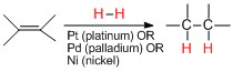 2 to give an alkane. For this reaction to proceed at a reasonable rate, a metal catalyst must be present to activate the H