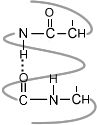 | In the α helix structure: the hydrogen bonds are between amino acids in the same chain (usually 5 or 6 amino acid residues apart) . |  |