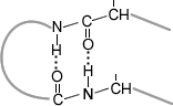 | In β pleated sheets: the hydrogen bonds are between amino acids in parts of the same chain that lie parallel to one another. |  |