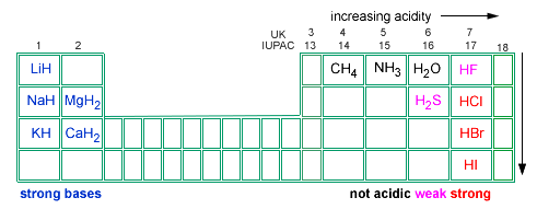 Acidity increases across a row and down a group as shown above.