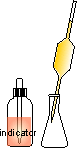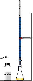 The key to a titrimetric determination is knowing the exact amount of substance in of one of the blue and yellow solutions. The solution for which this is known is called the standard solution. The standard solution may be used EITHER in the burette or in the titration flask. | ![]() | ||||