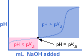 the concentration of the acid in the flask equals the concentration of its conjugate base[H3O+] equals Ka; therefore –log[H3O+] = –log Ka and pH = pKa.