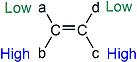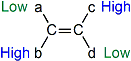Once the priorities have been assigned, the configuration of the double bond can be assigned as shown below.