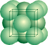 green atoms, there are 8 atoms at corners and 6 atoms at faces. Thus there are 8 × 1/8 plus 6 × ½ equals 4 atoms within the unit cell.