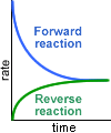 the rate of the reverse reaction increases with time.