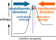 As shown in the diagram, the endothermic direction has a higher activation energy.