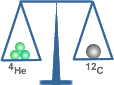 4He atoms are one-third as heavy as 12C atoms so 1 mole of 4He atoms must weigh 4.0 g.