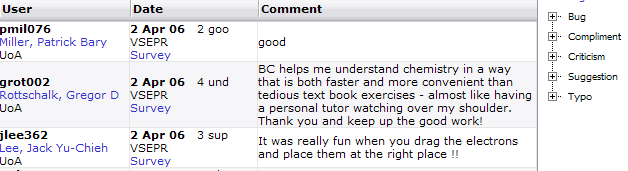 - student comments More