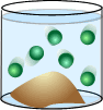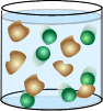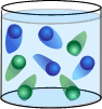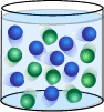 The diagrams show green and blue particles as reactants in solution. Reaction between these is faster in