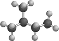 The image at the right represents a molecule containing four carbon atoms (black) in a chain and a one carbon branch. The hydrogens (grey spheres) attached to each carbon are also shown. It would be very difficult to use such a complicated picture every time we wanted to