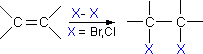 Thus dihaloalkanes in which the halogen atoms are on adjacent carbon atoms can be prepared by reaction of halogens with alkenes.